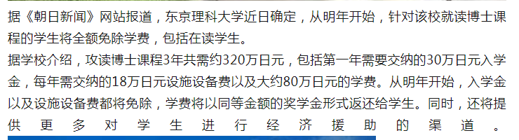 日本東京理科大學(xué)將實(shí)行博士課程學(xué)費(fèi)全免!
