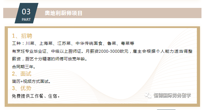 歐洲廚師項目,有才你就來