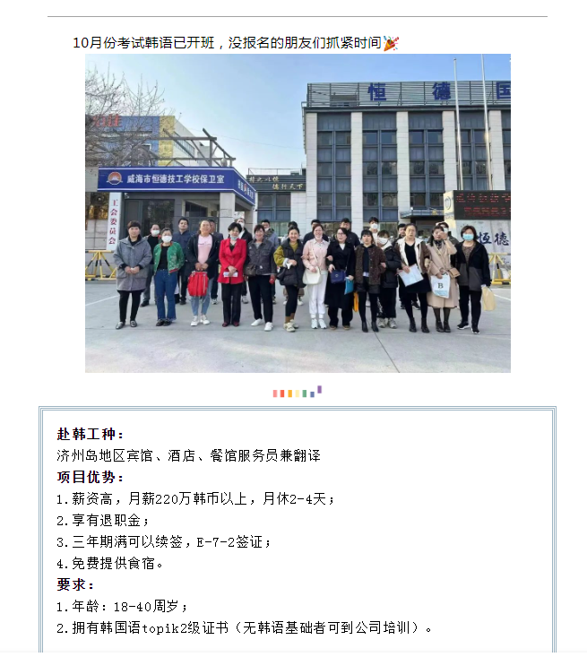 版權(quán)所有:山東恒德國際經(jīng)濟(jì)技術(shù)合作有限公司 威海恒德職業(yè)培訓(xùn)學(xué)校 地址:威海市高區(qū)火炬路153號-A 免費(fèi)熱線:4006150009電話:(韓國部)+86-631-5672008(日本部)+86-631-5672006 (新加坡)+86-631-5672009 (留學(xué)部)+86-631-5672011 傳真:+86-631-5672028 郵 編:264209 郵箱:hengdeguoji@163.com51La| 策劃制作:威海雷迅網(wǎng)絡(luò) 魯ICP備19060589號 魯公網(wǎng)安備 37100302000191號