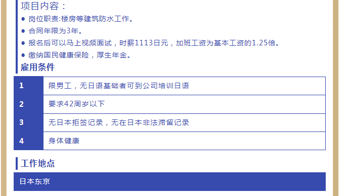 【恒德國(guó)際】日本近期招聘項(xiàng)目