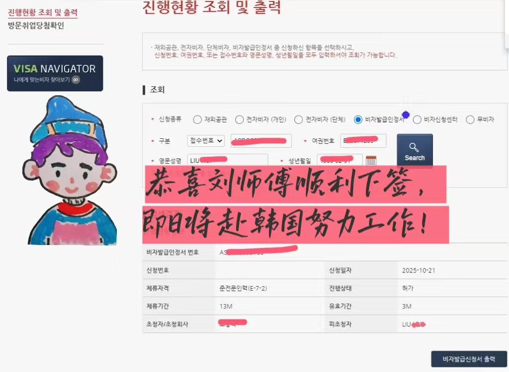 好消息傳來!恒德勞務合作項目的劉師傅韓國工作簽證已順利獲批,即將開啟赴韓高薪就業之旅。